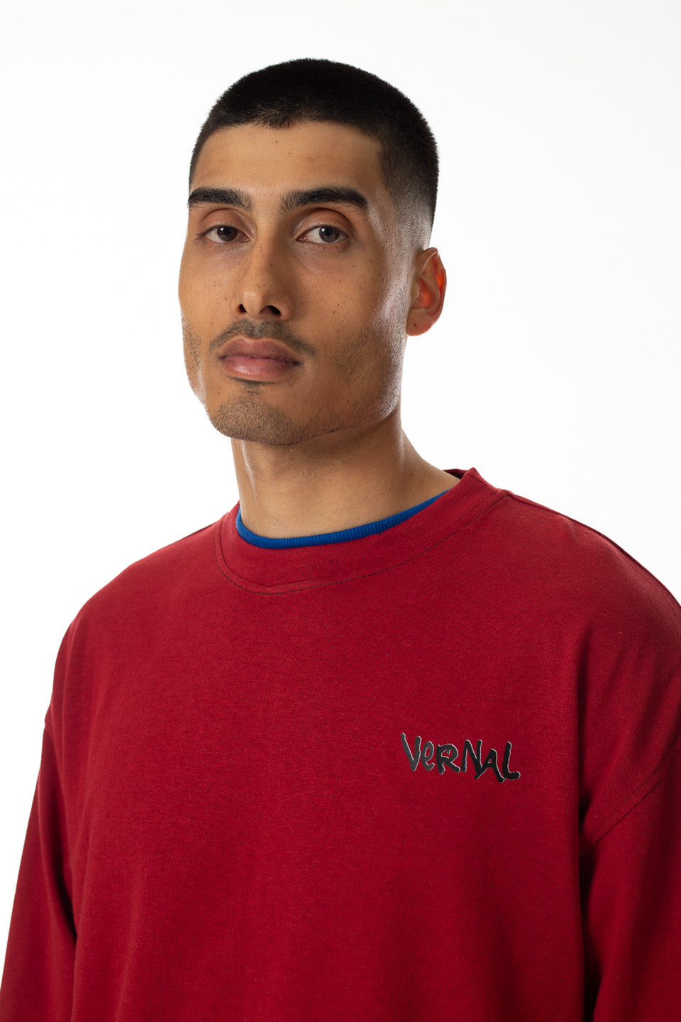 El corte es levemente boxy, con un largo más corto de lo habitual, aportando una silueta moderna y proporcionada. Las costuras en hilo negro contrastan con el tono borgoña, realzando su carácter artesanal.
