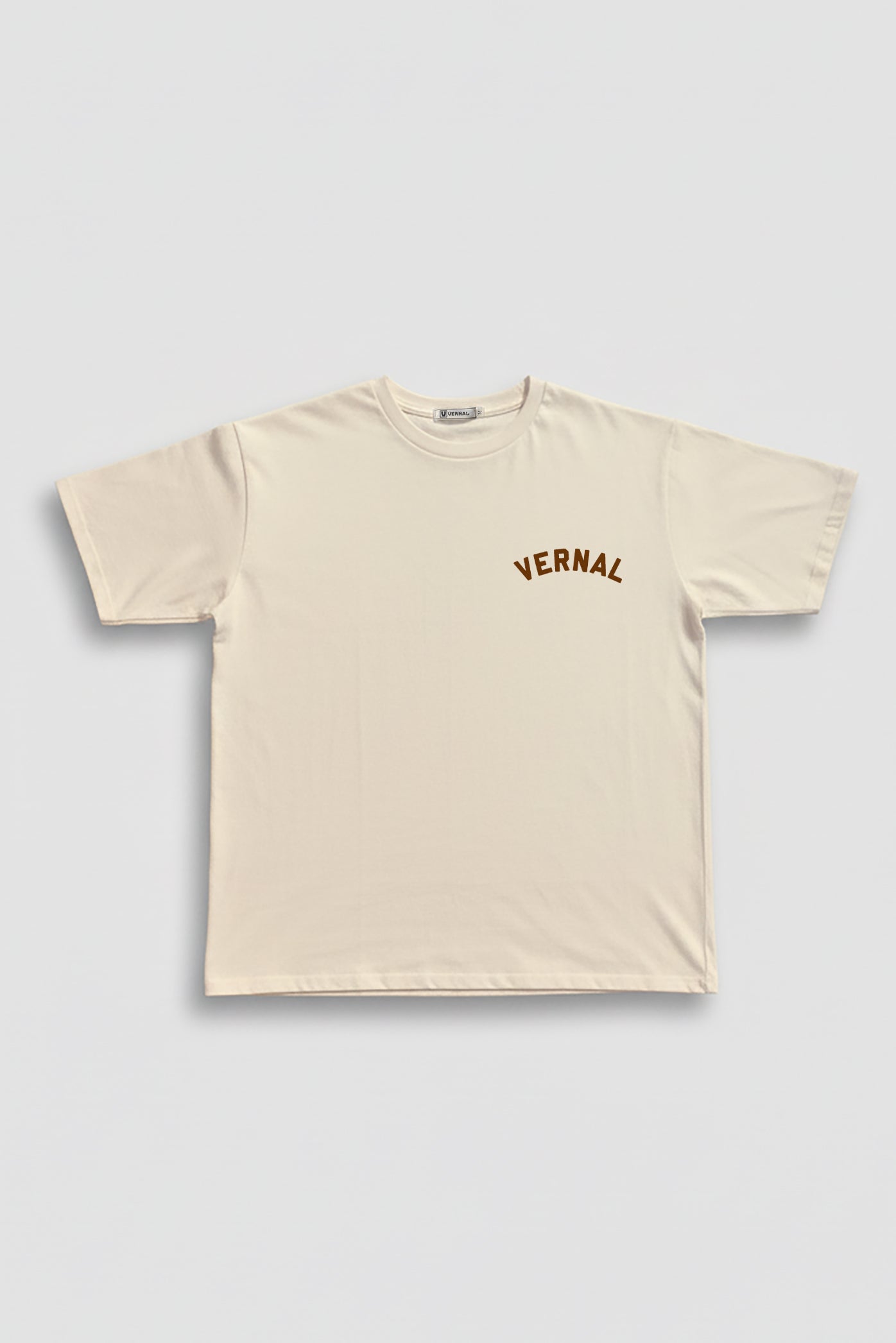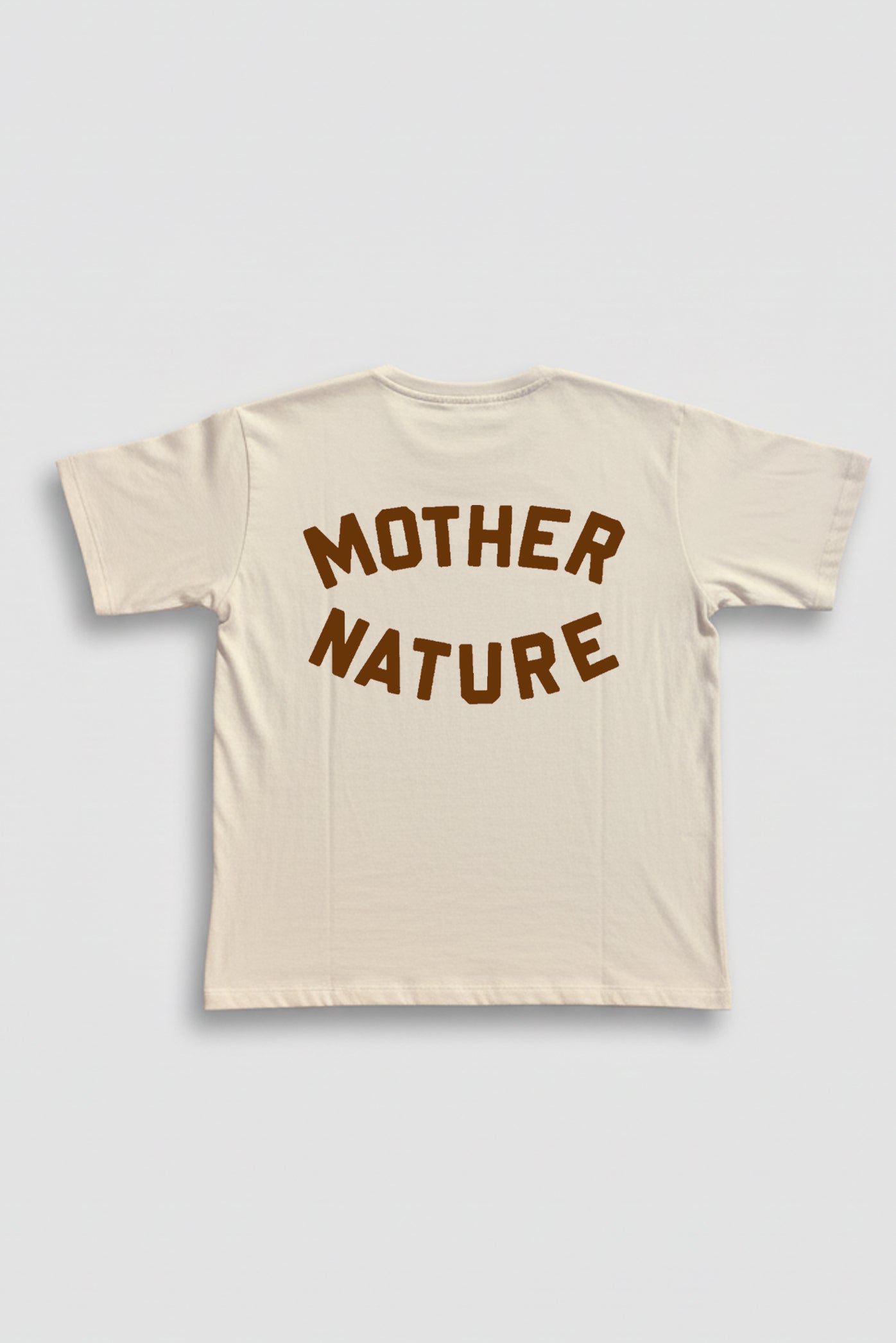 La MOTHER NATURE reinterpreta la identidad Vernal con un espíritu cálido y orgánico: tipografía collegiate en marrón sobre base natural, evocando la estética vintage de los años 70.